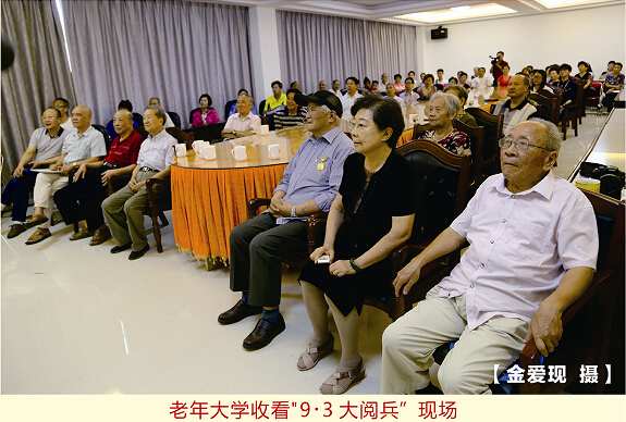 9月3日上午,福安市老年大学组织收看中央电视台 “9 3”大阅兵实况直播。老年大学领导班子成员、特邀抗战老战士代表、以及部分教师、学员共80多人参加收看。